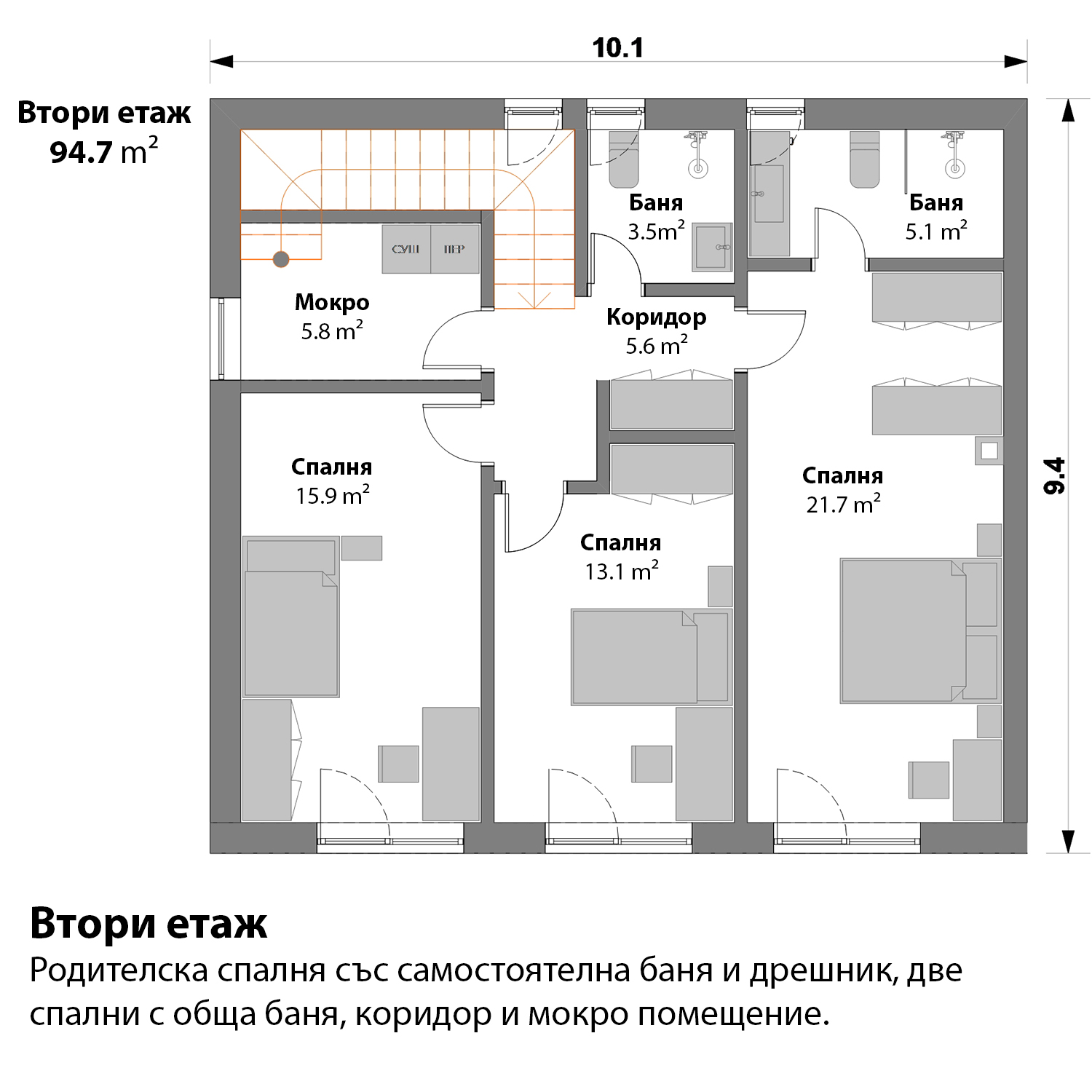 Еднофамилни къщи, проектирани с много внимание към детайла, в синхрон с разбирането за съвременна архитектура. Функционално обособена площ 200 - 240 кв.м. вдъхновена от най-актуалните тенденции за модерен и динамичен начин на живот, разпределена в два жилищни етажа и собствен, самостоятелен парцел от 400 кв. м.