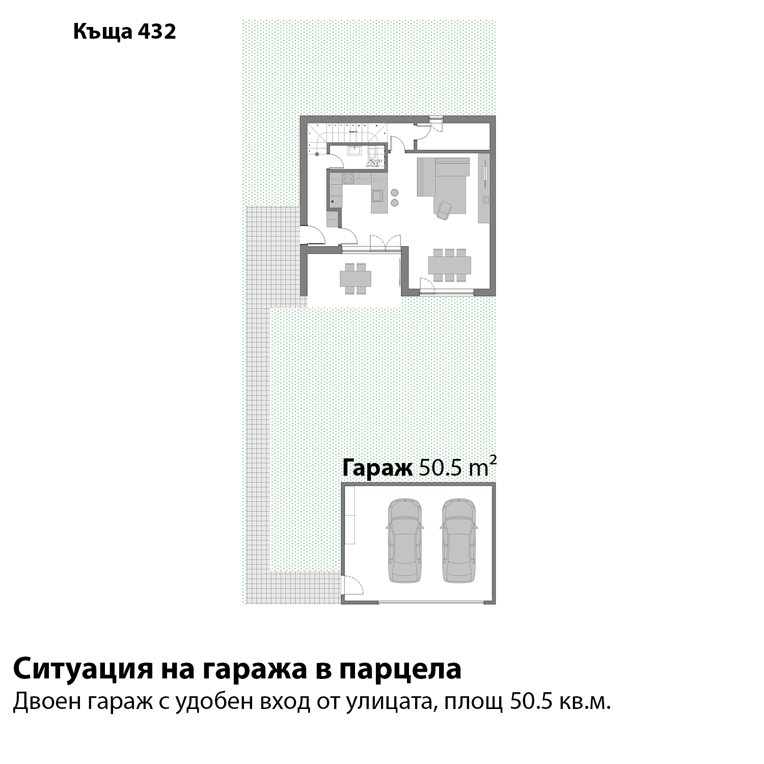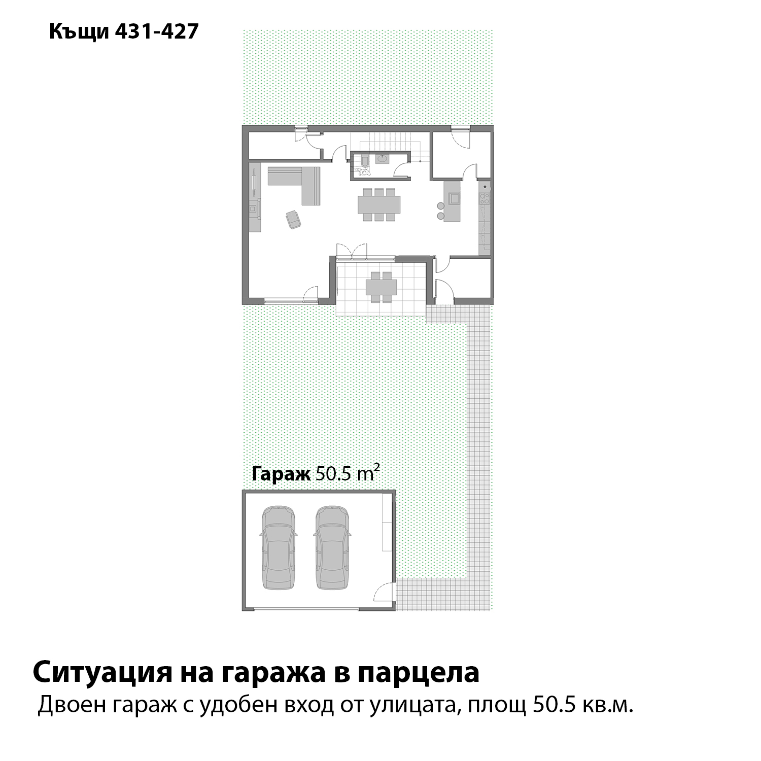 Площта на гаража е 50.5 кв.м.м, достатъчно за два автомибила и с удобен вход от улицата.